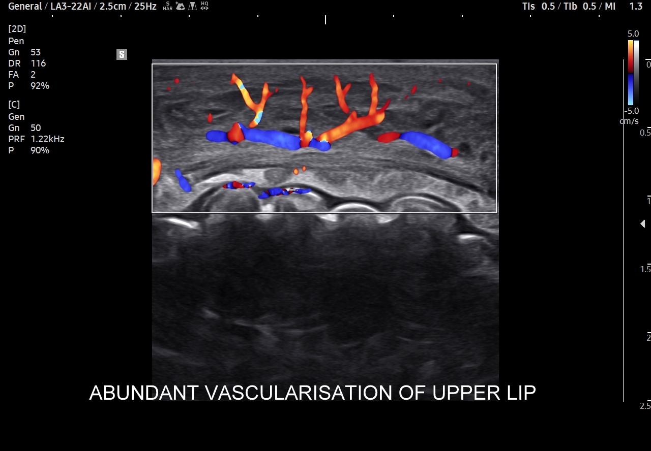 Trójkąt śmierci na twarzy obejmuje również usta. Należy pamiętać, iż są one organami mocno unaczynionymi, co przedstawione jest na załączonych obrazach sonograficznych, a wszelkie infekcje ostre bądź przewlekłe, spontaniczne lub jatrogenne również mogą być przyczyną w/w infekcyjnych powikłań wstępujących oraz zstępujących.