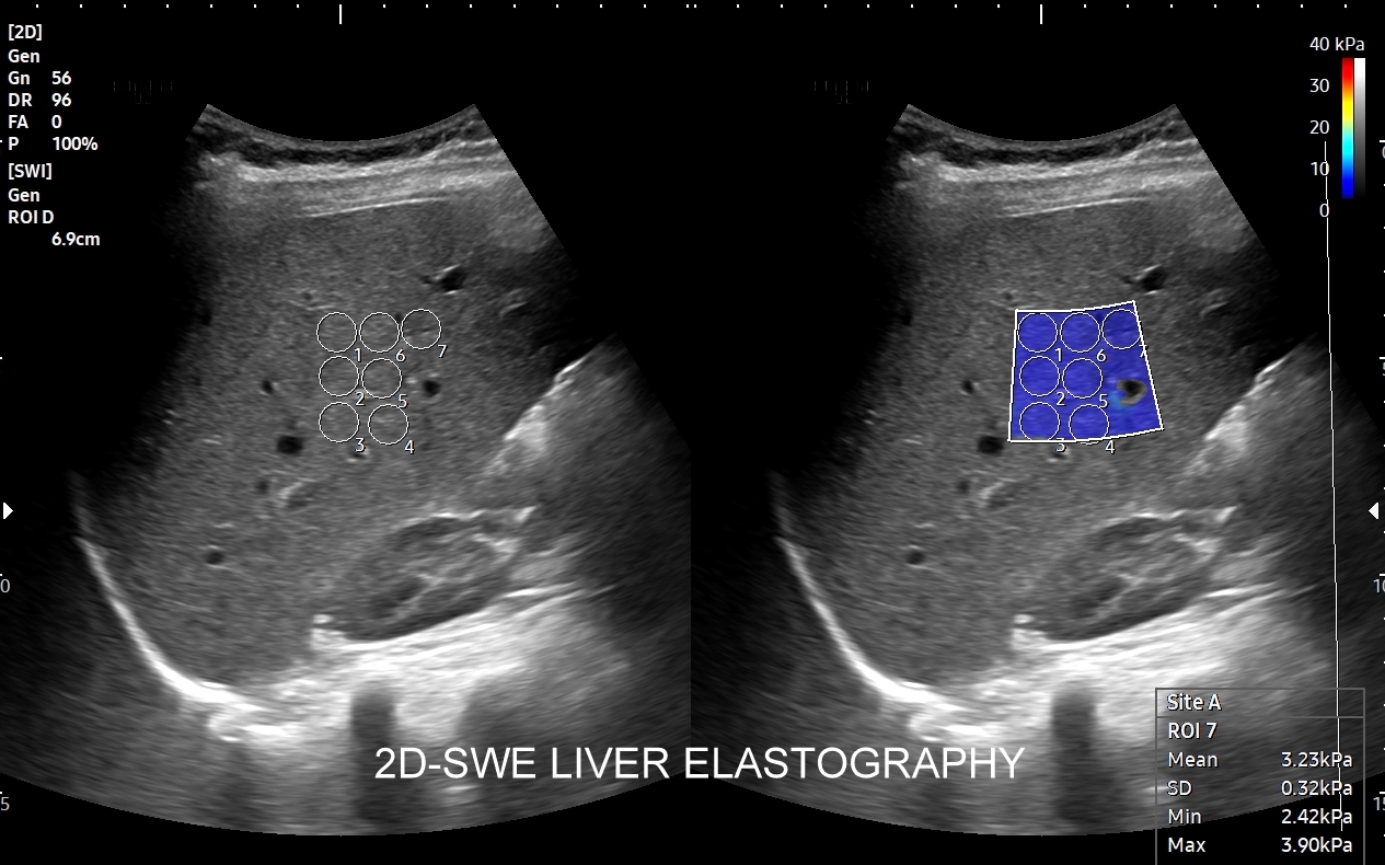 W ramach kompleksowej oceny wątroby elastografię 2D-SWE warto jednoczasowo połączyć z przeprowadzeniem badania USG przepływów wątrobowych oraz oceną stłuszczenia wątroby QUS w ramach kompleksowego badania MPUS brzucha. Podczas rejestracji zapytaj się o Multiparametryczne badanie USG / MPUS jamy brzusznej >