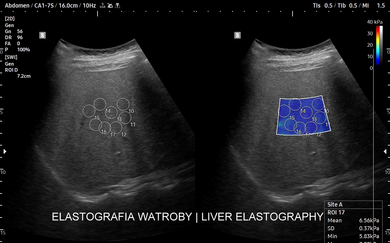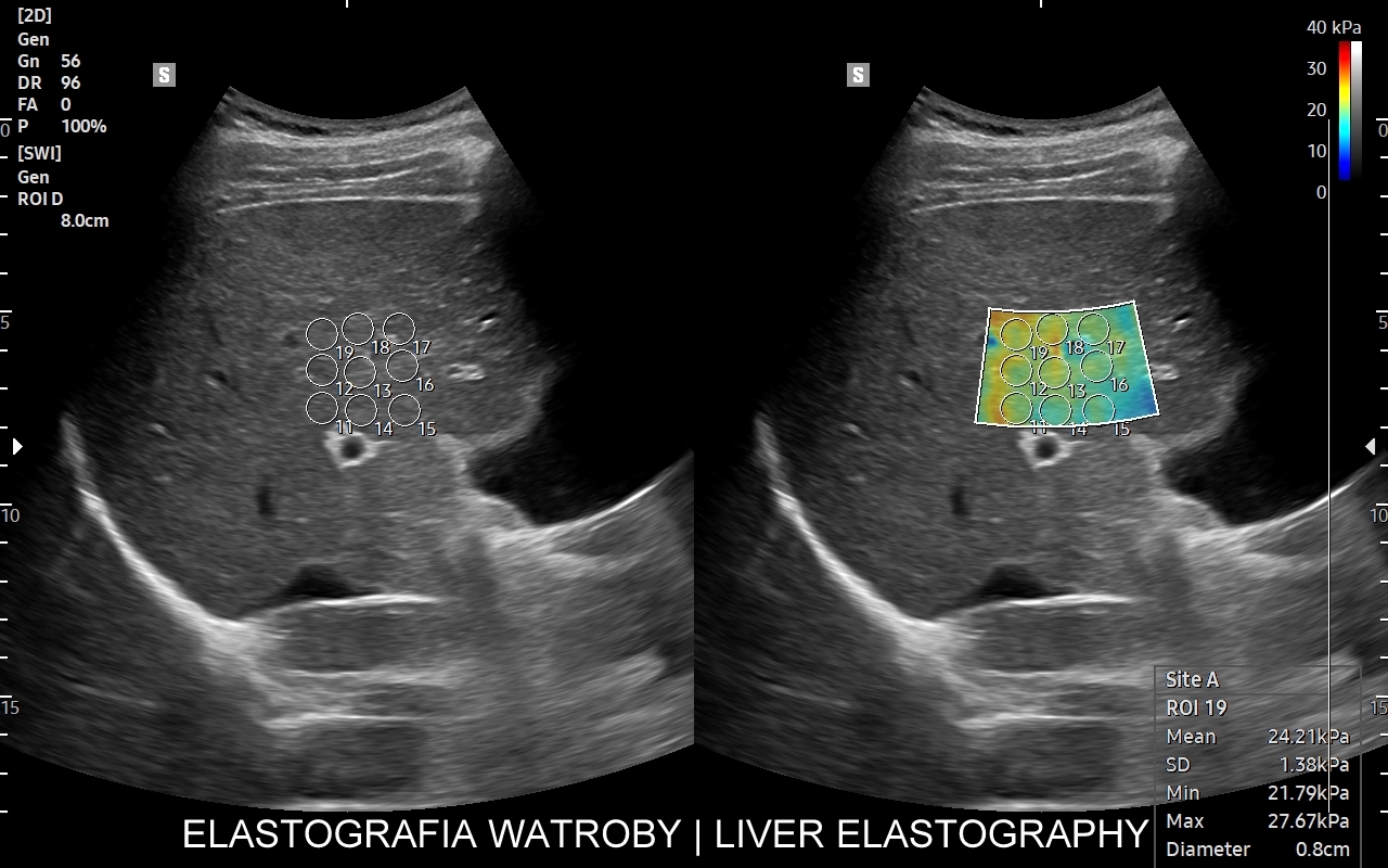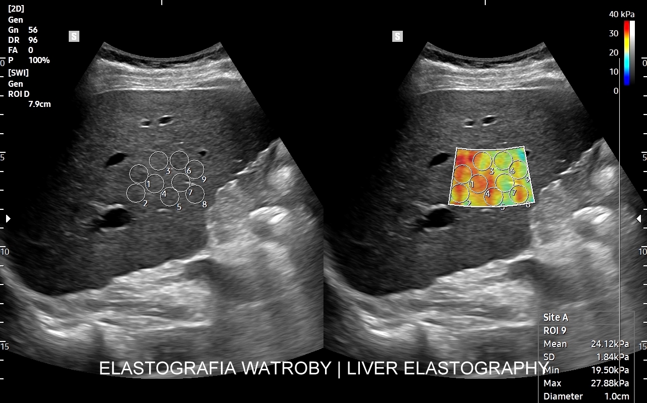 Nowoczesna metoda nieinwazyjnej oceny chorób miąższu wątroby przy zastosowaniu elastografii 2D-SWE będącej ewolucją testu Fibroscan dostępna jest we Wrocławiu w prowadzonej od 2011 r. przez Pana dr Tomasza Szczepańskiego Interdyscyplinarnej Pracowni Ultrasonograficznej. W razie zaistnienia potrzeby kompleksowego badania stanu wątroby w przebiegu zapalenia, zatrucia, stłuszczenia, zwłóknienia, marskości, hemochromatozy, choroby Wilsona, czy innych zaburzeń metabolicznych służymy pomocą diagnostyczną w postaci elastografii i badania multiparametrycznego wątroby, a także wsparciem konsultacyjnym.