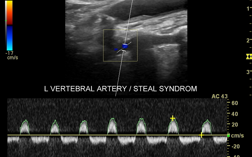 Choroby tętnic. Najczęstszą chorobą tętnic jest miażdżyca, która naturalnie i powoli rozwija się wraz z wiekiem, jednakże może ulec znacznemu przyspieszeniu i nasileniu pod wpływem takich czynników jak palenie papierosów, cukrzyca, zaburzenia lipidowe, czy nadciśnienie tętnicze. Rozwijająca się miażdżyca doprowadza do zwężeń naczyń tętniczych, a czasem nawet do ich zamknięcia wywołując objawy niedokrwienne. Przykładami ostrych chorób niedokrwiennych jest udar mózgowy oraz zawał serca. Z kolei przykładami przewlekłych zespołów związanych z miażdżycą są demencja, angina brzuszna i chromanie przestankowe. Inne choroby tętnic obejmują m. in. tętniaki, rozwarstwienia, zapalenia, czy zespoły podkradania, których cech poszukuje się w trakcie wykonywania badania USG Doppler tętnic.