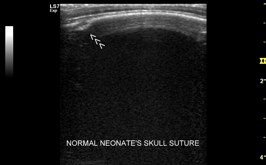 Poza strukturami wewnątrzczaszkowymi w badaniu USG główki niemowlaka oceniana jest pokrywa czaszki, w tym szwy i kości czaszkowe, tkanka podskórna oraz skóra głowy. Badanie USG szwów czaszkowych ma istotne znaczenie przy ocenie niesymetrycznego lub zdeformowanego kształtu głowy w kontekście rozpoznania kraniosynostozy (ang. craniosynostosis), tj. stanu, w którym dochodzi do przedwczesnego oraz nieprawidłowego zarastania szwów. W kraniosynostozie w miejscu zarastania tworzy się zwykle patologiczne twarde uwypuklenie / guz, które posiada charakterystyczny obraz sonograficzny pozwalający na rozróżnienie zarastania szwów w przebiegu kraniosynostozy od przedawkowania witaminy D, czy fizjologicznej wcześniejszej fuzji kości czaszki.