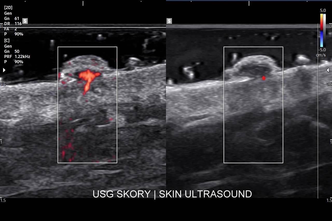 Badanie USG skóry i powłok jest metodą diagnostyczną, która swoją czułością oraz dokładnością przewyższa w ocenie patologii powłok badanie rezonansem magnetycznym. W obrębie powłok ciała w badaniu USG najczęściej rozpoznaje się różnorodne guzy oraz stany zapalne. Wśród guzów dominują łagodne tłuszczaki, kaszaki i torbiele inkluzyjne, a także przepukliny. U młodszych pacjentów często wykrywa się naczyniaki. Rzadziej spotkane są guzy złośliwe jak mięsaki, czy przerzuty nowotworowe. W pracowni USG dr Szczepańskiego poza wizualną oceną guzów powłok przeprowadzana jest ich ocena biologii w kontekście cech złośliwości i oceny przewidywalnego tempa wzrostu.