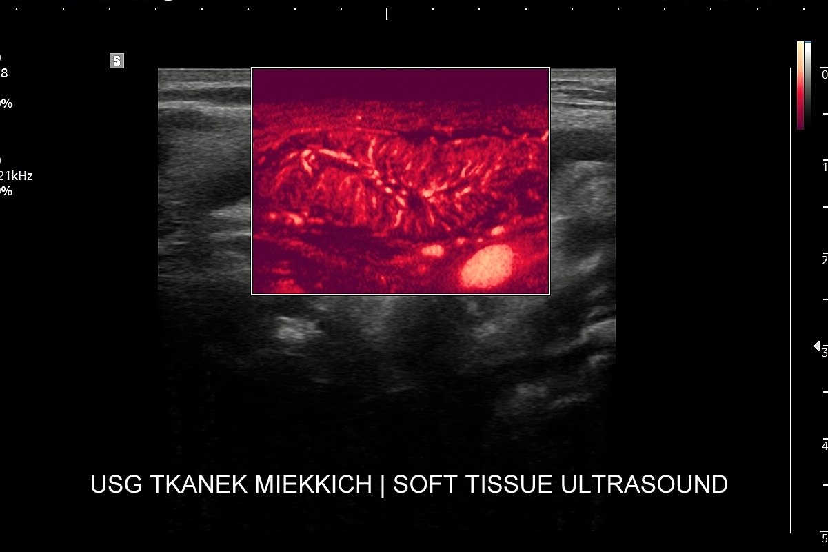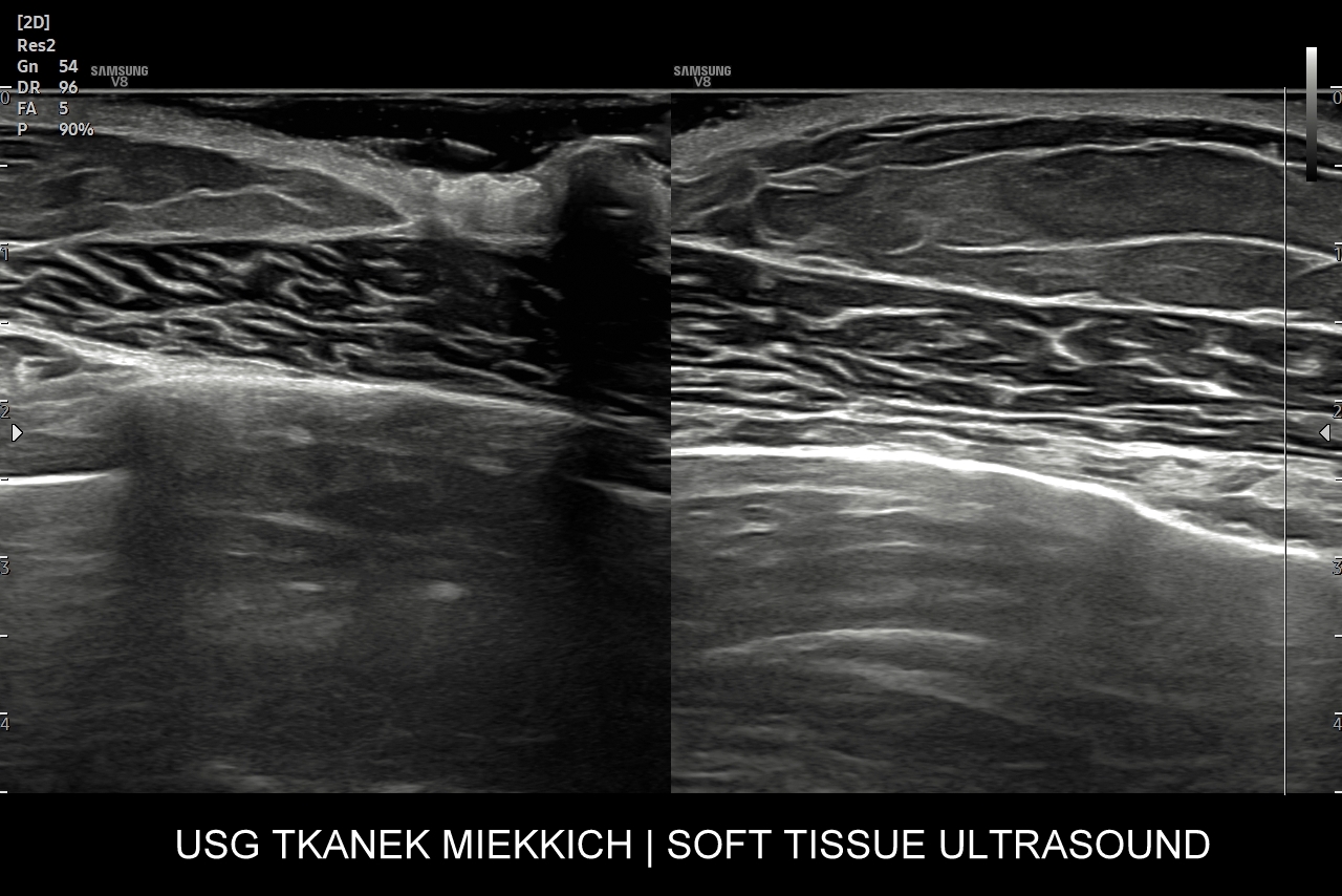 USG tkanek miękkich obejmuje ocenę diagnostyczną opisanych już wcześniej patologii, ale także zmian miękkotkankowych położonych w głębszych warstwach powłok oraz obszarach podpowięziowych takich jak chrząstki, ciała tłuszczowe, mięśnie, ścięgna, troczki, pochewki ścięgniste, stawy i gangliony, torbiele wrodzone, czy aparat paznokciowy.