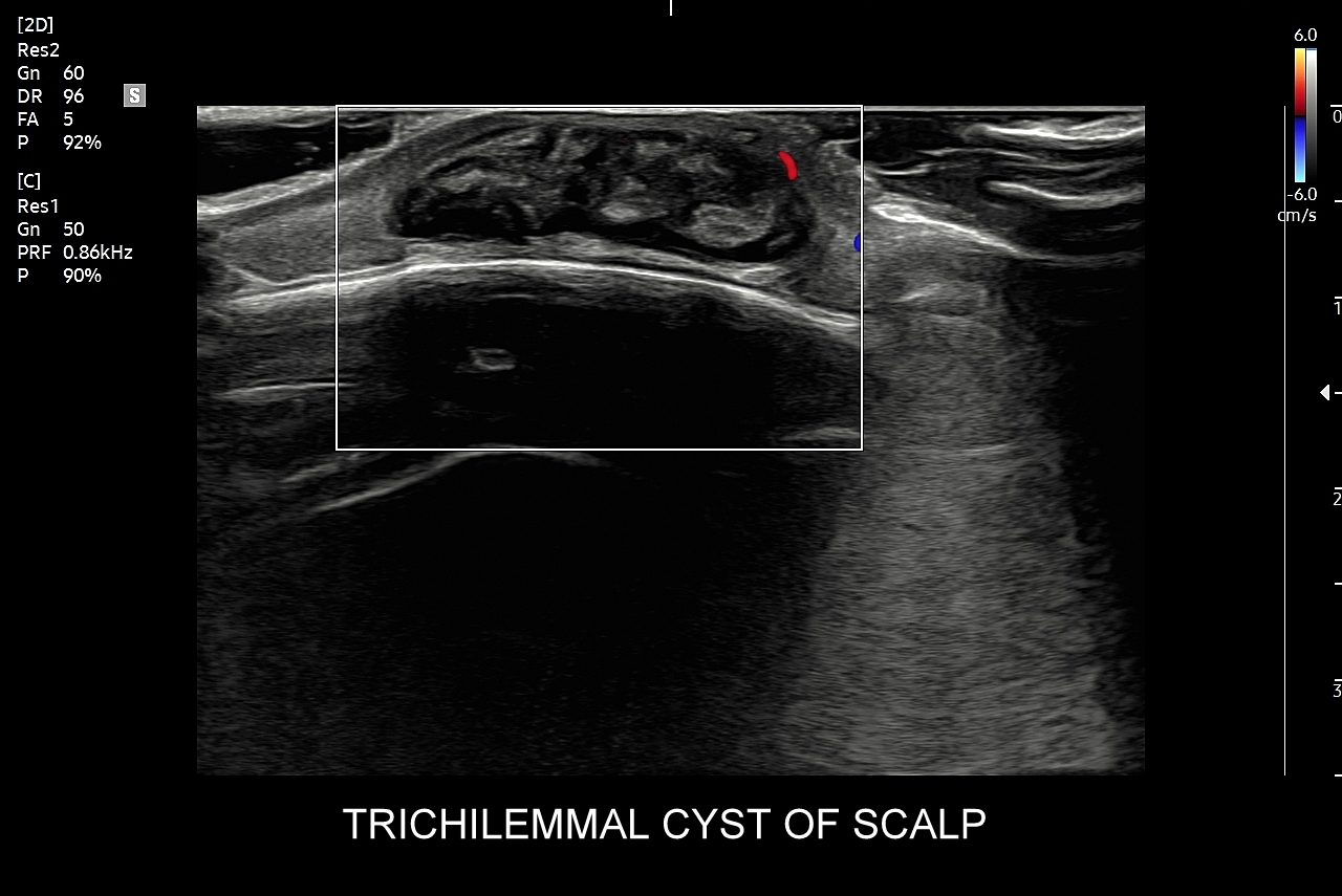 Ważną grupą dermatoz, w których diagnostyce ogromną rolę odgrywa badanie USG skóry jest tzw. tetrada związana z patologią wywodzącą się z okluzji mieszków włosowych, tj. torbiel pilonidalna lokalizująca się szparze międzypośladkowej; trądzik odwrócony (ang. hidradenitis suppurativa) lokalizujący się w pachwinach i pod pachami; trądzik skupiony (ang. acne conglobata) lokalizujący się na twarzy, ramionach i plecach oraz dissecting cellulitis, rzadkie i ciężkie schorzenie lokalizujące się na owłosionej skórze głowy.